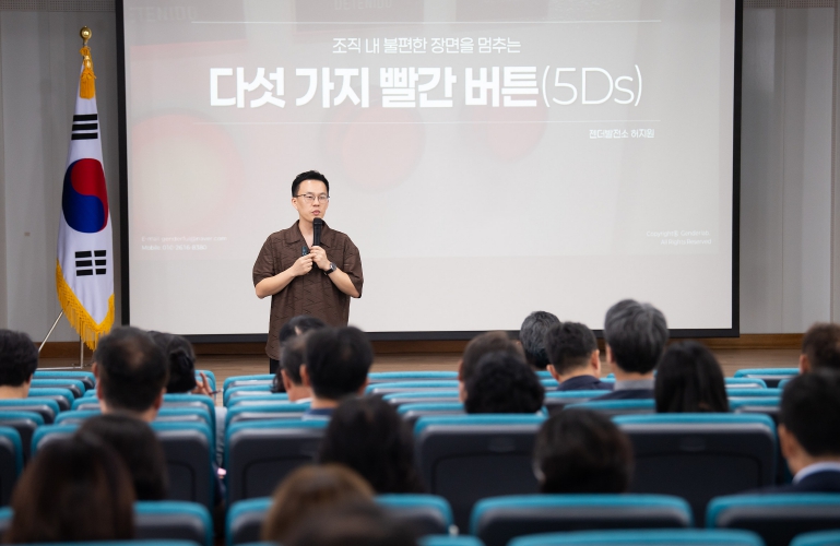 [뉴스다컴] 구미시는 지난 24일 박정희대통령역사자료관 세미나실에서 5급 이상 고위직 공무원 100여명을 대상으로 ‘4대 폭력(성희롱·성폭력·성매매·가정폭력) 예방 맞춤형 교육’을 진행했다. 이번 교육은 공직사회의 핵심 리더들이 폭력 예방과 대응 역량을 강화하고, 건강하고 안전한 조직문화를 확산시키기 위해 마련됐다.
