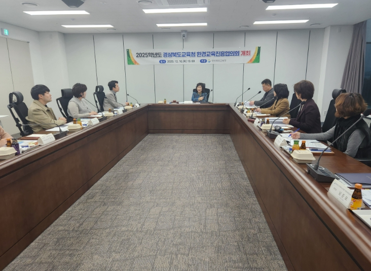 [뉴스다컴] 경북교육청은 16일 본청 행복지원동 301호 회의실에서 환경교육진흥협의회 위원 8명이 참석한 가운데, 학교환경교육의 발전과 생태전환교육의 내실화를 위한 ‘2025 경상북도교육청 환경교육진흥협의회’를 개최했다고 밝혔다.