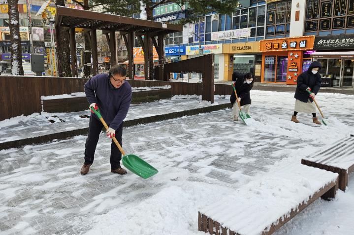 제설작업은 계단과 경사로 등 겨울철 미끄럼 사고 위험이 높은 구간을 우선적으로 점검했으며, 눈을 치우는 작업과 함께 염화칼슘 살포를 병행하여 시민들의 불편을 최소화했다. 또한, 통행량이 많은 도로와 인도 주변을 중심으로 작업을 실시하여 안전하게 이동할 수 있도록 세심하게 관리했다.