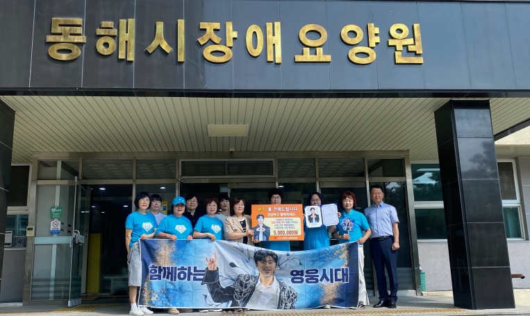 [뉴스다컴] 임영웅 팬클럽 ‘영웅시대’(강원도 영동지역방)는 8월 30일, 동해시장애요양원(원장 조은희)을 방문해 중증장애인의 자립지원을 위한 후원금 500만원을 기탁했다.