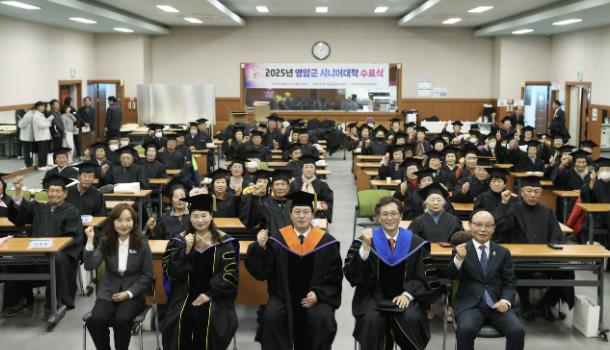 [뉴스다컴] 영암군이 1일 종합사회복지관에서 수료생 등 110여 명이 참석한 가운데 ‘2025년 영암군 시니어대학 수료식’을 개최했다.
