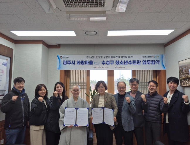 [뉴스다컴] 경주시 청소년수련시설 화랑마을과 대구 수성구 청소년수련관은 지난 2일 화랑마을에서 청소년 활동 발전과 상호 협력 강화를 위한 업무협약을 체결했다.