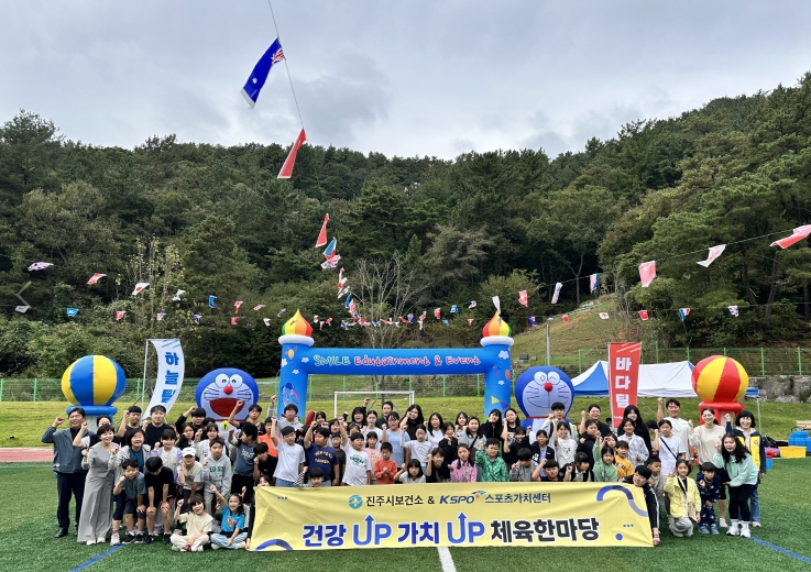 [뉴스다컴] 진주시는 KSPO 스포츠가치센터와 협력하여 추진 중인 아동 비만예방사업 ‘건강올리고’의 일환으로, 19일 내동면 소재 KSPO 스포츠가치센터에서‘건강UP 가치UP 체육한마당’를 개최했다.