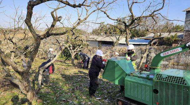 파쇄지원단은 과수 잔가지, 고춧대 같은 영농부산물을 파쇄해 농가의 일손을 돕고, 불법소각 예방, 미세먼지 저감 등을 동시에 이루는 영암군의 제도.