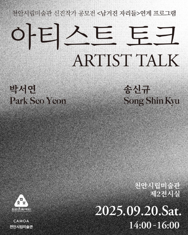 아티스트 토크는 선착순 성인 30명을 대상으로 진행되며, 신청은 오는 19일 오후 5시까지 천안시립미술관 누리집에서 하면 된다.