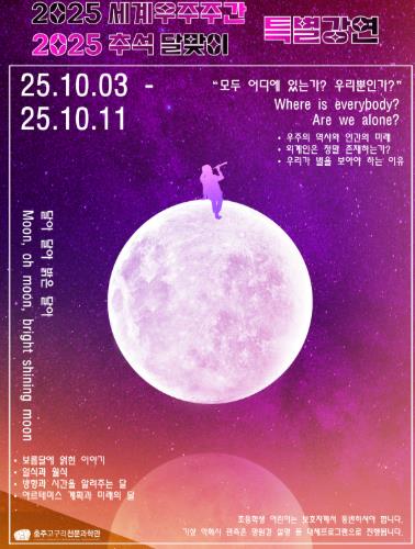 [뉴스다컴] 충주고구려천문과학관에서는 세계우주주간과 추석 한가위 연휴를 맞아 10월 3일부터 11일까지 특별 강연과 달맞이 관측 행사를 진행한다.