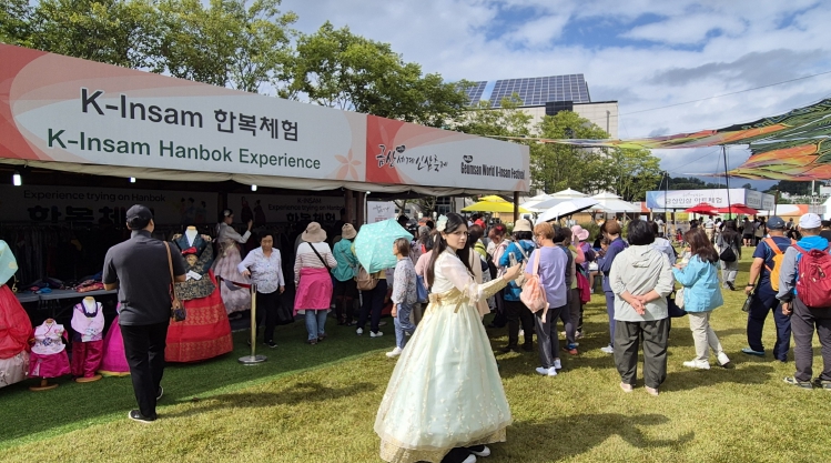 [뉴스다컴] 제43회 금산세계인삼축제의 무료 한복체험이 인기를 끌고 있다.
