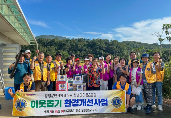 이번 봉사활동에는 창녕라이온스클럽 회원 20명이 참여해 벽체 보수와 벽지 교체, 집 안팎 청소, 쓰레기 정리 등 다양한 작업을 진행했으며, 20만 원 상당의 생필품을 전달해 따뜻한 이웃사랑을 실천했다.