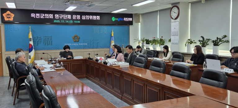 [뉴스다컴] 옥천군의회는 지난 11월 14일 의원 간담회실에서 2025년 옥천군의회 의원연구단체 운영 심의위원회(위원장 조규룡)를 개최하고 2건의 의원연구단체의 연구 활동 결과보고서를 심의ㆍ의결했다고 밝혔다.