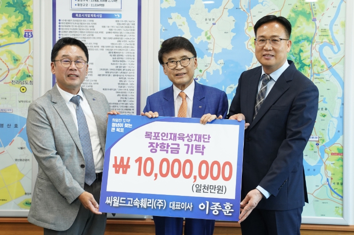 [뉴스다컴] 목포시는 지난 23일, 씨월드고속훼리(주)(대표 이종훈)가 (재)목포인재육성재단에 지역 우수 인재 양성을 위한 장학금 1천만 원을 기탁했다고 밝혔다.