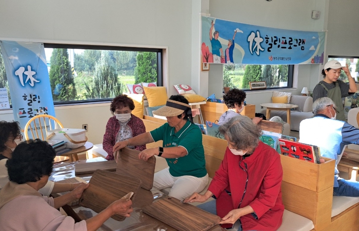 [뉴스다컴] 완주군 치매안심센터가 최근 삼례읍의 한 체험카페에서 치매환자 가족들을 위한 ‘휴(休) 힐링 프로그램’을 열고 지친 마음을 보듬는 특별한 하루를 선사했다.