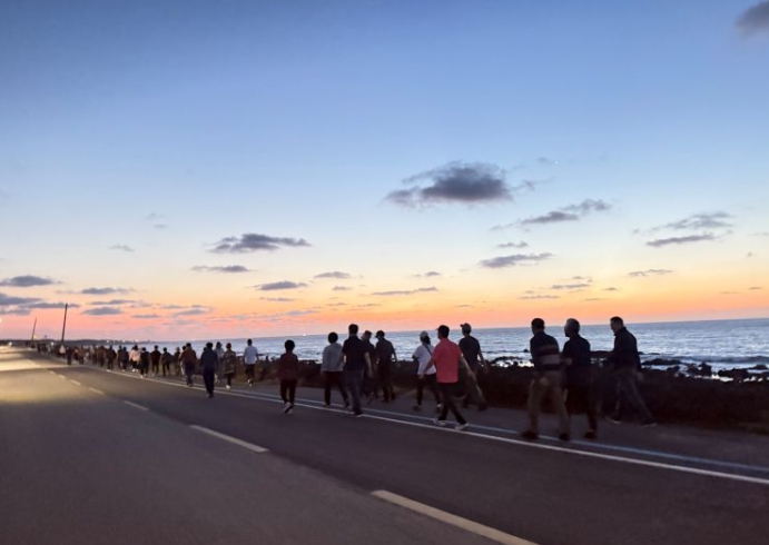 [뉴스다컴] 서귀포시는 일상생활 속 1일 7천 보 걷기 활성화를 위하여 11일 새벽 5시 신산리 마을주민들과 함께하는 '힐링 UP! 혼디모영 걸을락(樂)' 신산마을걷기를 운영했다.