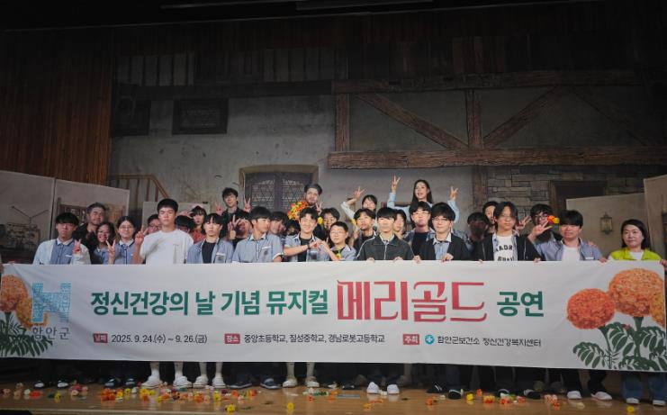[뉴스다컴] 함안군보건소는 2025년 정신건강의 날(10월 10일)을 기념해 지난 24일부터 26일까지 3일간 관내 중앙초등학교, 칠성중학교, 경남로봇고등학교 재학생과 교직원 등 250여 명을 대상으로 찾아가는 생명존중 뮤지컬 ‘메리골드’를 공연했다고 밝혔다.