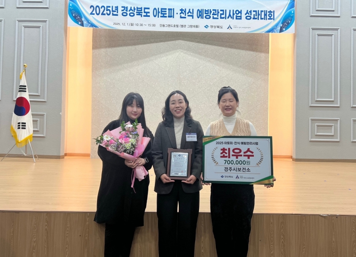 [뉴스다컴] 경주시보건소는 지난 1일 안동 그랜드호텔에서 열린 ‘2025년 경상북도 아토피‧천식 예방관리 사업 성과대회’에서 최우수상을 수상했다.