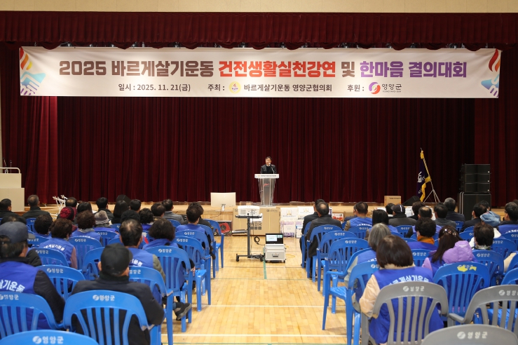 [뉴스다컴] 바르게살기운동 영양군협의회(회장 안형욱)는 11월 21일(금) 영양군민회관에서 회원 250여 명이 참석한 가운데 2025년 바르게살기운동 건전생활실천 강연회 및 한마음 결의대회를 성황리에 개최했다.