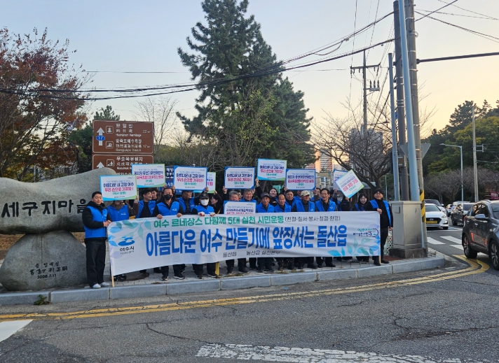 | ▲ 여수시 돌산읍(읍장 김진욱)은 지난 19일 세구지삼거리 일원에서 여수 르네상스 다함께 5대 실천 시민운동 캠페인을 전개하며 2026여수세계섬박람회 성공 개최에 힘을 보탰다. |
