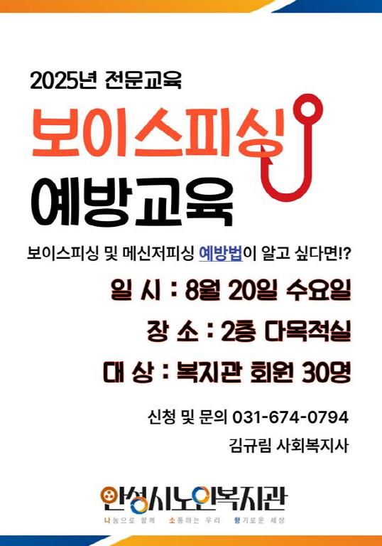 | ▲ 안성시노인복지관, 보이스피싱 예방교육 참여자 모집 |