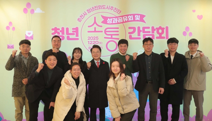 육동한 춘천시장은 20일 화동2571에서 ‘춘천시 청년친화도시 추진단 성과 공유 및 청년 소통 간담회’를 열었다. 이날 행사는 청년친화도시 추진단의 주요 활동 성과와 정책 추진 경과가 공유됐다. 형식적인 보고를 넘어 청년과 시장이 직접 소통하는 자리로 구성돼 의미를 더했다.