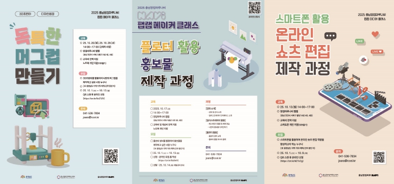 충남혁신센터 담당자는 “이번 교육과정을 통해 디지털 콘텐츠 제작과 창의적 아이템 제작 능력을 높이고, 이를 실제 마케팅과 제품개발에 효과적으로 활용할 수 있기를 기대한다.”고 밝혔다.