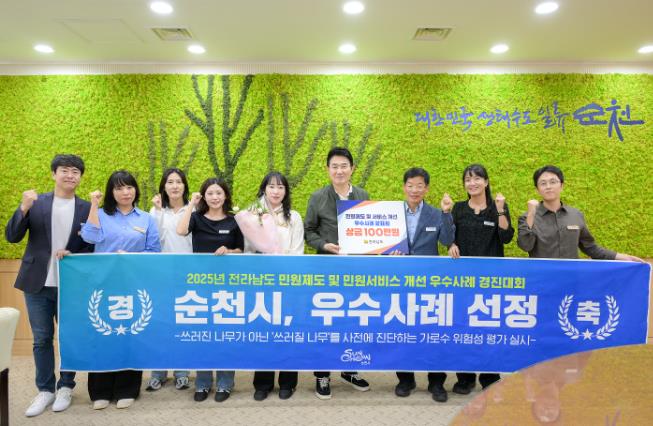 [뉴스다컴] 순천시가 전라남도 도민행복소통실에서 주관한 '2025년 민원제도 개선 우수사례' 공모에서 우수사례로 선정되어, 지난 1일 시상식 및 사례발표를 진행했다.