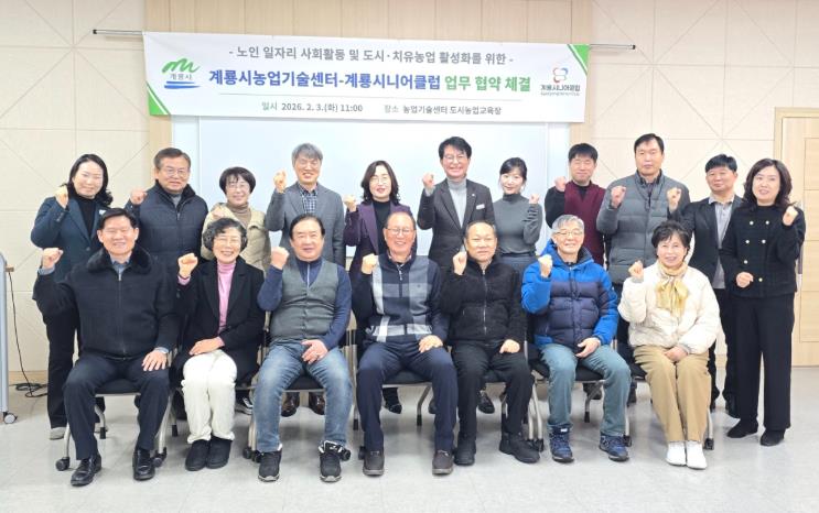 [뉴스다컴] 충남 계룡시는 3일 농업기술센터와 계룡시니어클럽이 노인 일자리 및 도시․치유농업 활성화를 위한 업무협약을 체결했다고 밝혔다.