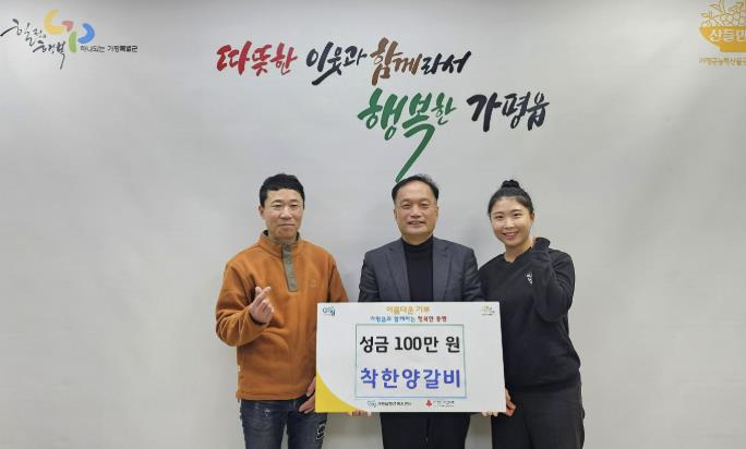 [뉴스다컴] 가평군 가평읍 경춘로 소재 착한양갈비는 지난 19일 행정복지센터를 방문해 이웃돕기 성금 100만 원을 기탁했다.