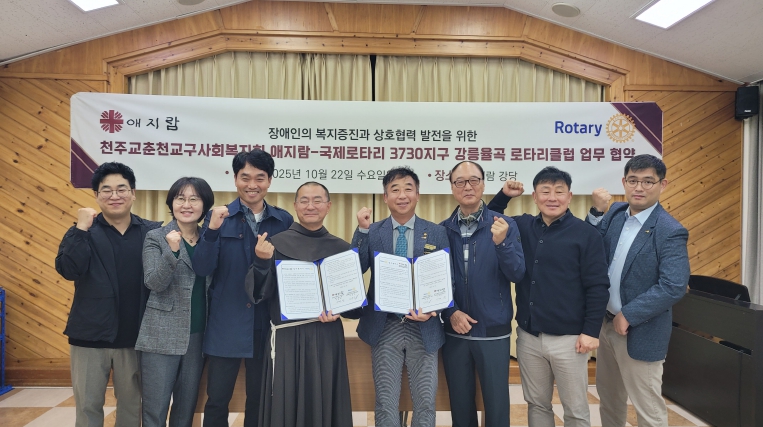 [뉴스다컴] ‘강릉장애인자립통합지원센터’와 ‘국제로타리 3730지구 강릉율곡 로타리클럽’(회장 이용기)은 지난 22일(수) 장애인의 복지증진을 위한 다양한 활동을 협조하고 건강한 사회를 조성하고자 업무협약(MOU)을 체결했다.