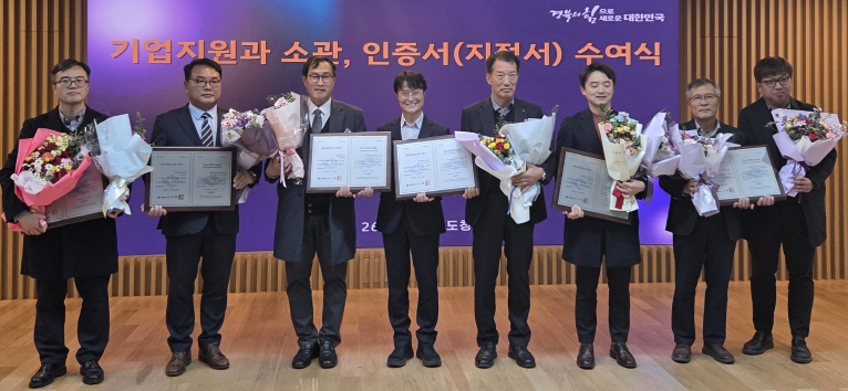 [뉴스다컴] 영천시는 지난 26일 경북도청에서 열린 ‘2025년 경상북도 PRIDE기업 인증서 수여식’에서 지역 기업인 한호에코스티㈜와 ㈜우성케미칼이 선정됐다고 밝혔다.