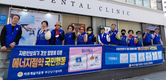 [뉴스다컴] 바르게살기운동 부산남구협의회(회장 신상진)는 4월 15일 오후 1시, 대연사거리 일대에서 고유가 및 에너지 위기 극복을 위한 ‘에너지 절약 실천 캠페인’을 펼쳤다.