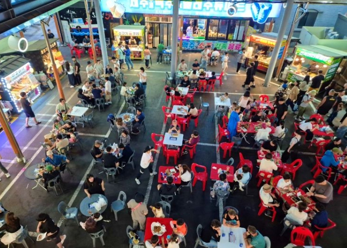 야시장은 다양한 이색 먹거리와 즐길거리로 지역주민과 관광객이 꾸준히 찾는 대표 야간 관광 명소이다.