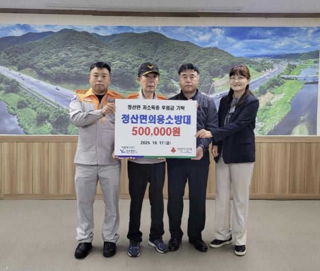 [뉴스다컴] 청산면의용소방대은 지난 17일 청산면행정복지센터를 방문해 지역사회 저소득층에게 따뜻한 온기를 나누고자 현금 50만 원을 기탁했다.