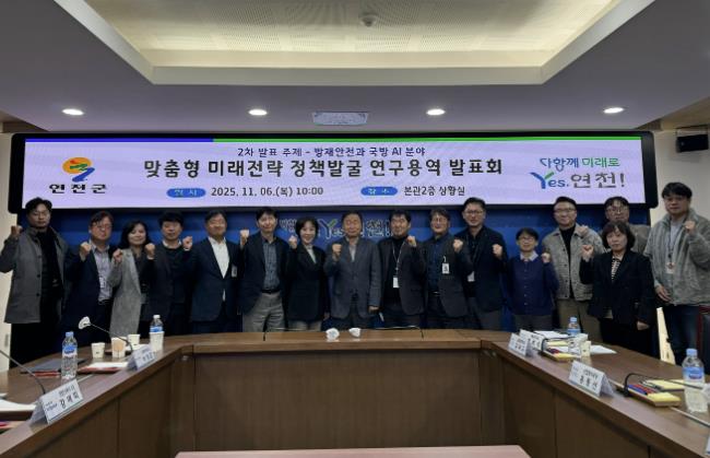[뉴스다컴] 연천군은 지난 6일 연천군청 상황실에서 『연천 맞춤형 미래전략 정책발굴 연구용역』 2차 연구결과 발표를 성황리에 마쳤다고 밝혔다.