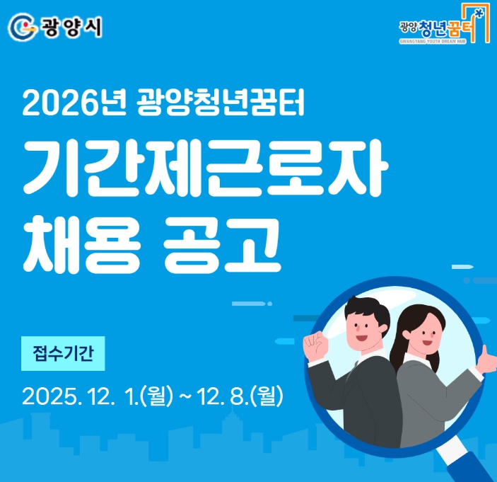 [뉴스다컴] 광양시는 2026년 한 해 동안 광양청년꿈터 운영을 함께할 기간제근로자 4명을 모집한다고 1일 밝혔다.