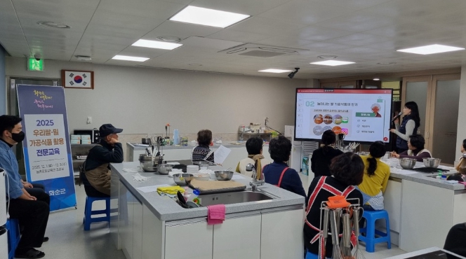 [뉴스다컴] 화순군은 지난 12월 1일부터 12월 3일까지 3일간 농촌문화교육관 조리실에서 관내 급식관계자, 영양(교)사, 가공·체험 프로그램 운영자 등 20명을 대상으로 ‘우리쌀·밀 가공식품 조리 기술 전문교육’을 실시했다고 밝혔다.