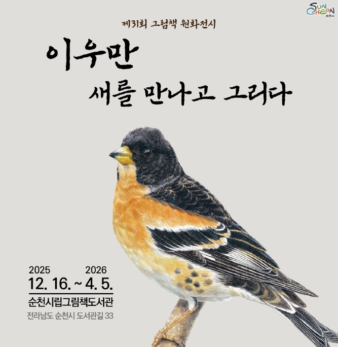 [뉴스다컴] 순천시는 오는 16일부터 2026년 4월 5일까지 순천시립그림책도서관에서 제31회 그림책 원화전시 '이우만 새를 만나고 그리다' 를 개최한다.