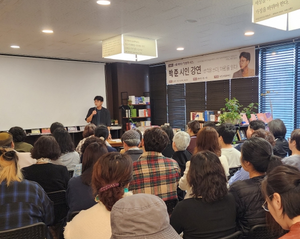 [뉴스다컴] 속초교육문화관은 10월 18일 박준 시인 초청 강연 ‘생각을 쓰다, 마음을 읽다.’를 끝으로 2025년 ‘인문학 시간’을 성황리에 마무리했다.