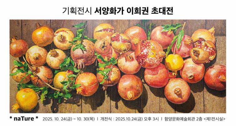 [뉴스다컴] 함양군은 오는 10월 24일부터 30일까지 함양문화예술회관 제1전시실에서 2025년 기획 전시로 서양화가 이희권 작가를 초대해 ‘naTure(네이처)’를 개최한다.