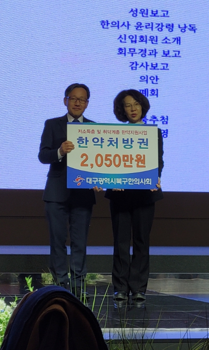 한편, 북구한의사회는 매년 한약처방권 후원을 이어오며 지역 어르신들의 건강 관리와 의료 사각지대 해소에 꾸준히 힘을 보태고 있다.