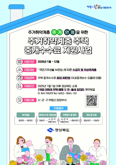 [뉴스다컴] 영덕군은 기초생활수급자와 차상위계층의 주거 이전에 따른 경제적 부담을 완화하기 위해 ‘주거 취약계층 주택 중개보수 지원사업’을 신청 접수한다.