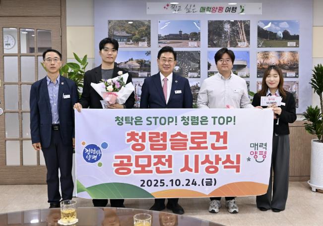 [뉴스다컴] 양평군은 지난 24일 ‘2025 청렴 슬로건 시상식’을 개최하고, 공정하고 투명한 공직문화 확산을 위해 추진한 ‘청렴 슬로건 공모전’의 수상작을 발표했다.