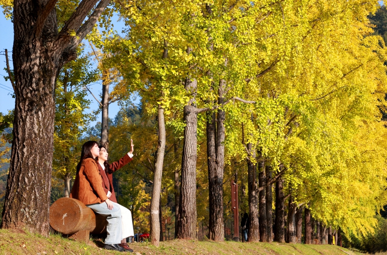 이곳의 노랗게 물든 은행잎이 선사하는 황홀경은 전국적인 유명세로 나들이객의 발길이 이어지고 있다.