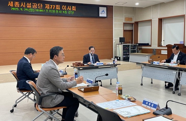 [뉴스다컴] 세종특별자치시시설관리공단의 주요 정책 의사결정기구인 이사회가 9월 29일 조치원청사 강당에서 제77회 이사회를 열고 2025년 상반기 경영혁신 성과를 공유하고 현안사업 추진 현황을 점검하는 한편 인사‧조직 관련 제도 개정안을 심의‧의결하는 자리로 마련됐다.