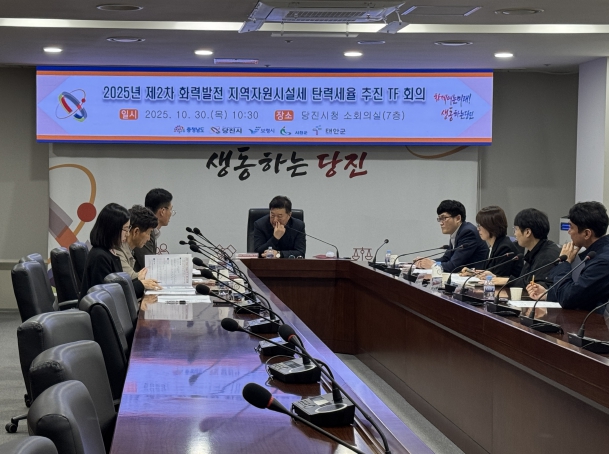 [뉴스다컴] 당진시는 10월 30일 당진시청 소회의실에서 화력발전 지역자원시설세의 탄력세율 적용 확대를 위해 ‘화력발전 지역자원시설세 탄력세율 T/F회의’를 진행했다고 밝혔다.