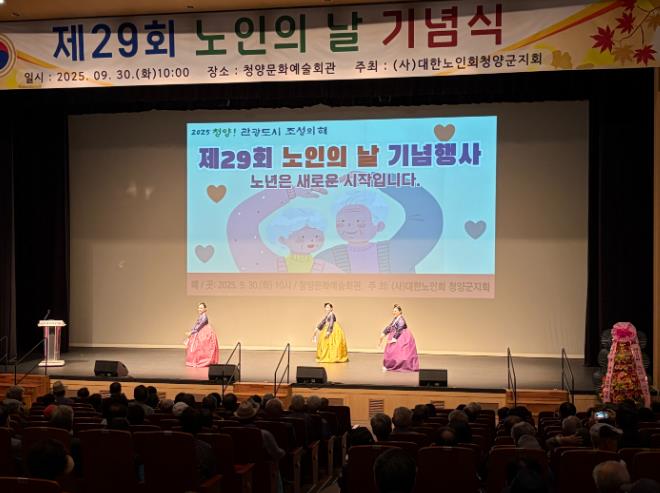 [뉴스다컴] 청양군은 30일 청양군 문화예술회관에서 10월 경로의 달을 맞아 대한노인회 청양군지회 주관으로 제29회 노인의 날 기념행사를 성대히 개최했다.