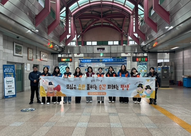 [뉴스다컴] 서북소방서(서장 김종욱)는 남서울대학교 119청소년단 학생들은 25일 성환역과 26일 남서울대학교 일대에서 ‘불조심 강조의 달’ 캠페인 홍보 활동을 펼쳤다고 26일 밝혔다. 남서울대 청소년단 학생들은 시민들에게 홍보물품을 나눠주며 주택용 소방시설 설치를 당부하고, 화재 예방의 중요성을 알리는 활동을 진행했다.