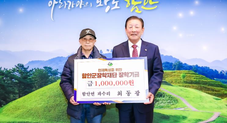 [뉴스다컴] 함안군 함안면 파수리에 거주하는 최동광 씨가 지난 25일 함안군청을 방문해 지역 인재 육성을 위해 장학기금 100만 원을 함안군장학재단에 기탁했다.