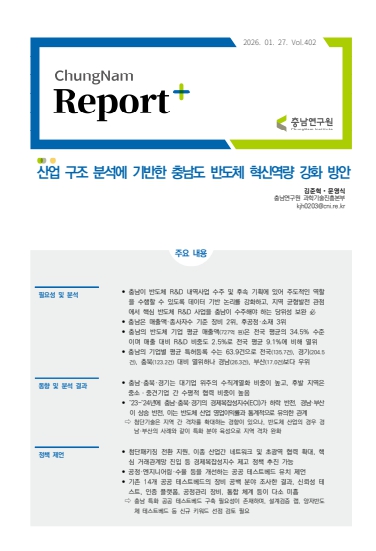 연구진은 “충남 반도체 산업의 한계는 기업 개별 역량의 문제가 아니라 검증·인증·고난도 거래 진입을 지원하는 공공 인프라의 부재에서 비롯된 구조적 문제”라며, “공공 테스트베드는 충남 기업의 R·D 투자 확대와 고부가가치 거래 진입을 동시에 촉진하는 핵심 수단이 될 것”이라고 밝혔다.