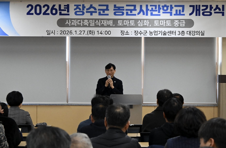 [뉴스다컴] 장수군은 지난 27일 농업기술센터 대강의실에서 교육생 130여 명이 참석한 가운데 ‘2026년 장수군 농군사관학교 개강식’을 성황리에 개최했다.