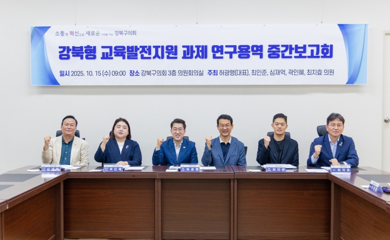 [뉴스다컴] 강북구의회 의원연구단체인 ‘강북형 교육발전지원 연구회’ (대표의원 허광행)는 지난 10월 15일 의회 3층 의원회의실에서 중간보고회를 열었다.