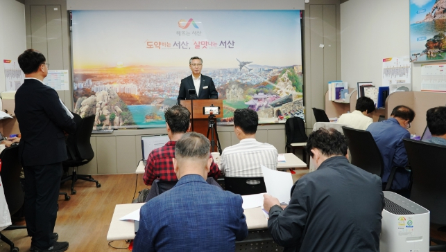 박경환 서산시 경제산업국장은 30일 시청 브리핑룸에서 기자회견을 열고 “서산시가 산업위기 선제대응지역으로 지정됨에 따라, 기업과 소상공인 지원을 위한 다양한 금융 및 투자 분야 시책을 본격 추진한다”라고 말했다.